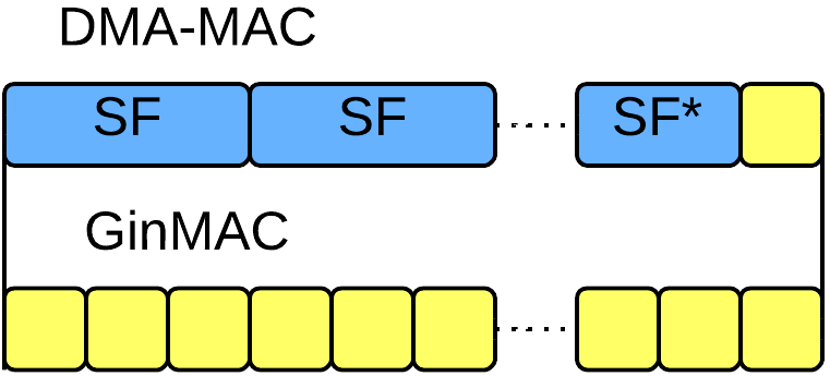 - The implementation on MiXiM platformm can be found in the OMNeT page. For comparison GinMAC GinMAC protocol is used.